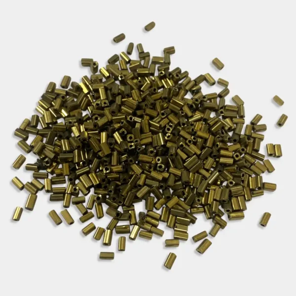 Original price was: ₹35.00.₹25.00Current price is: ₹25.00.Tube Beads or Bugle Beads Antique Gold or Mehndi Color (Size3/4) – Pack of 25 Grams