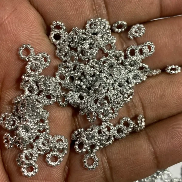 Original price was: ₹60.00.₹30.00Current price is: ₹30.00.Jewellery Making Metal Charms – Findings (Flower Shape, Pack of 15 Pieces)
