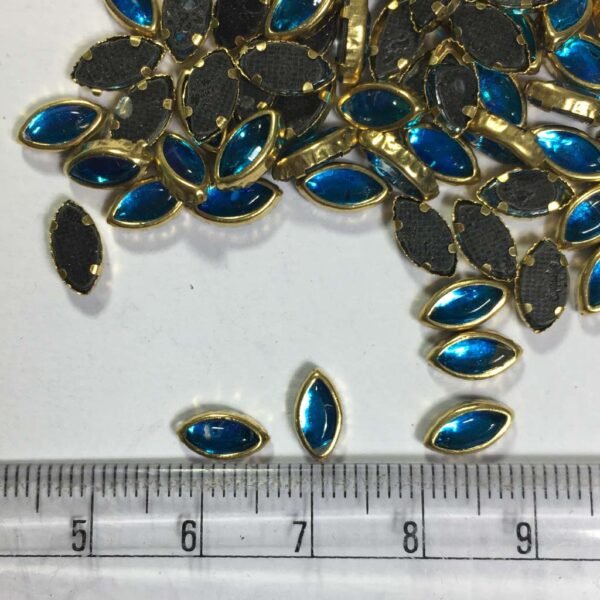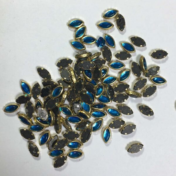 Glass Kundan Stones in Flat Back Mounts Eye Shape 8x5MM (Sky Blue)15 grams