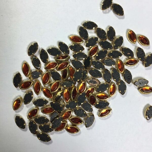 Glass Kundan Stones in Flat Back Mounts Eye Shape 8x5MM (Orange)15grams