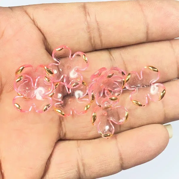 3D Resin flower Beads With Golden Edge Pink Color – 10 grams