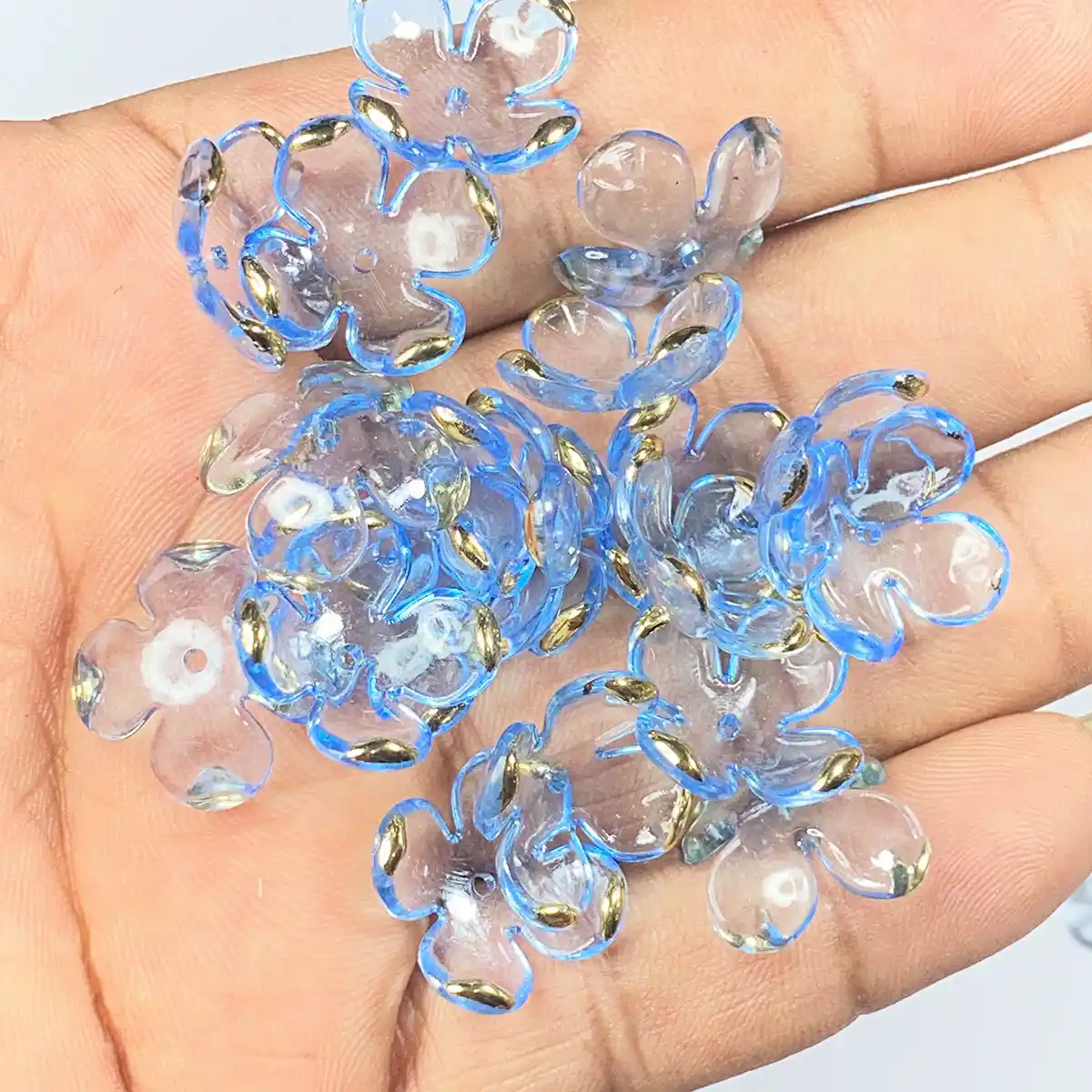 3D Resin flower Beads With Golden Edge Blue Color – 10 grams
