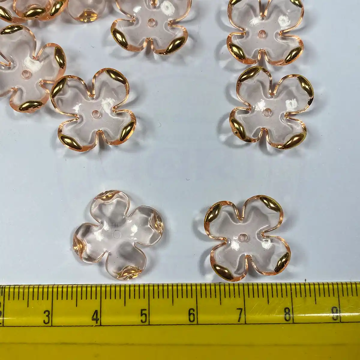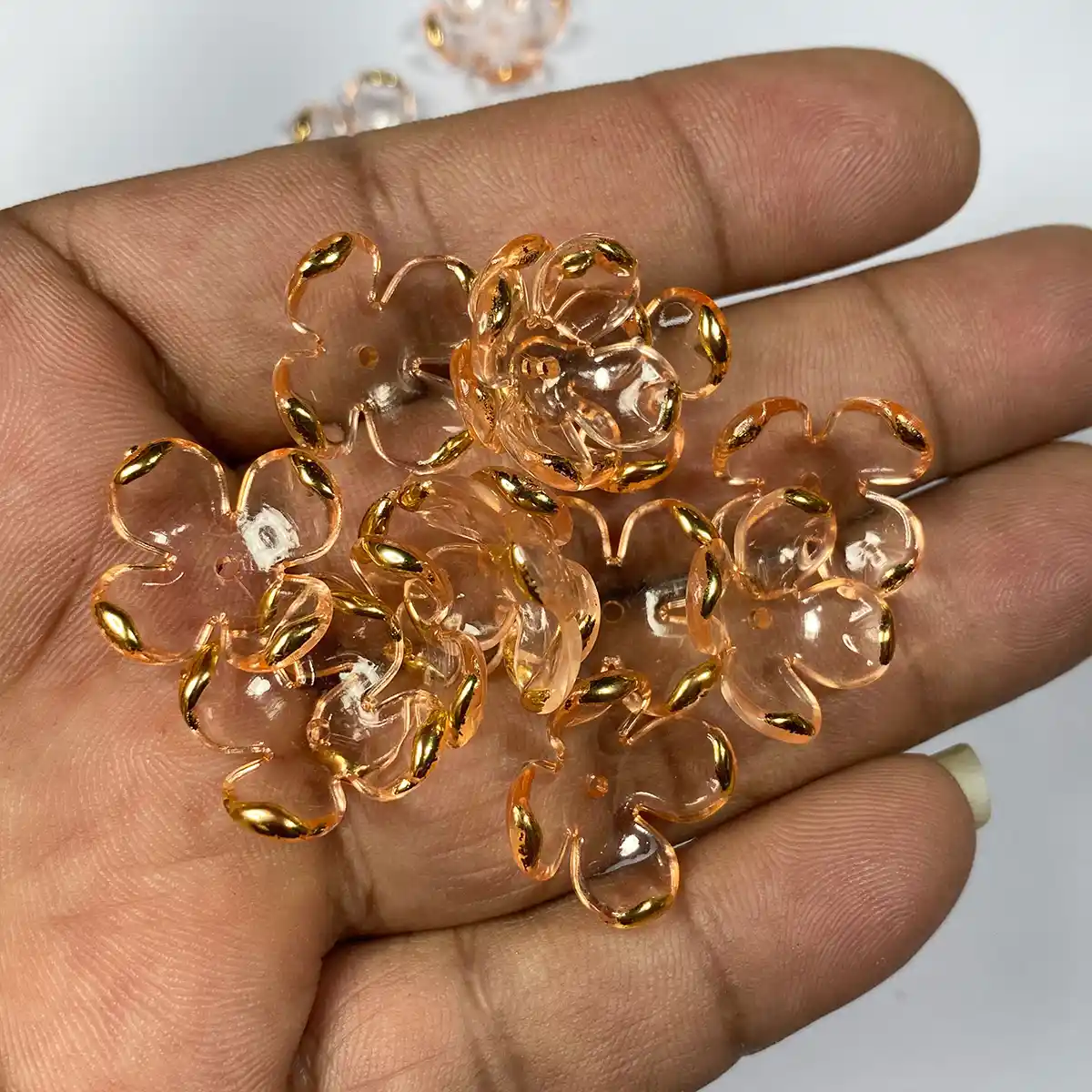 Size: 20/5MM, Material: High-quality Resin Acrylic, Design: 3D Flower with Golden Edge, Weight: 10 Grams (Approx. 20 Pieces), Type: Four Petals with Center Hole