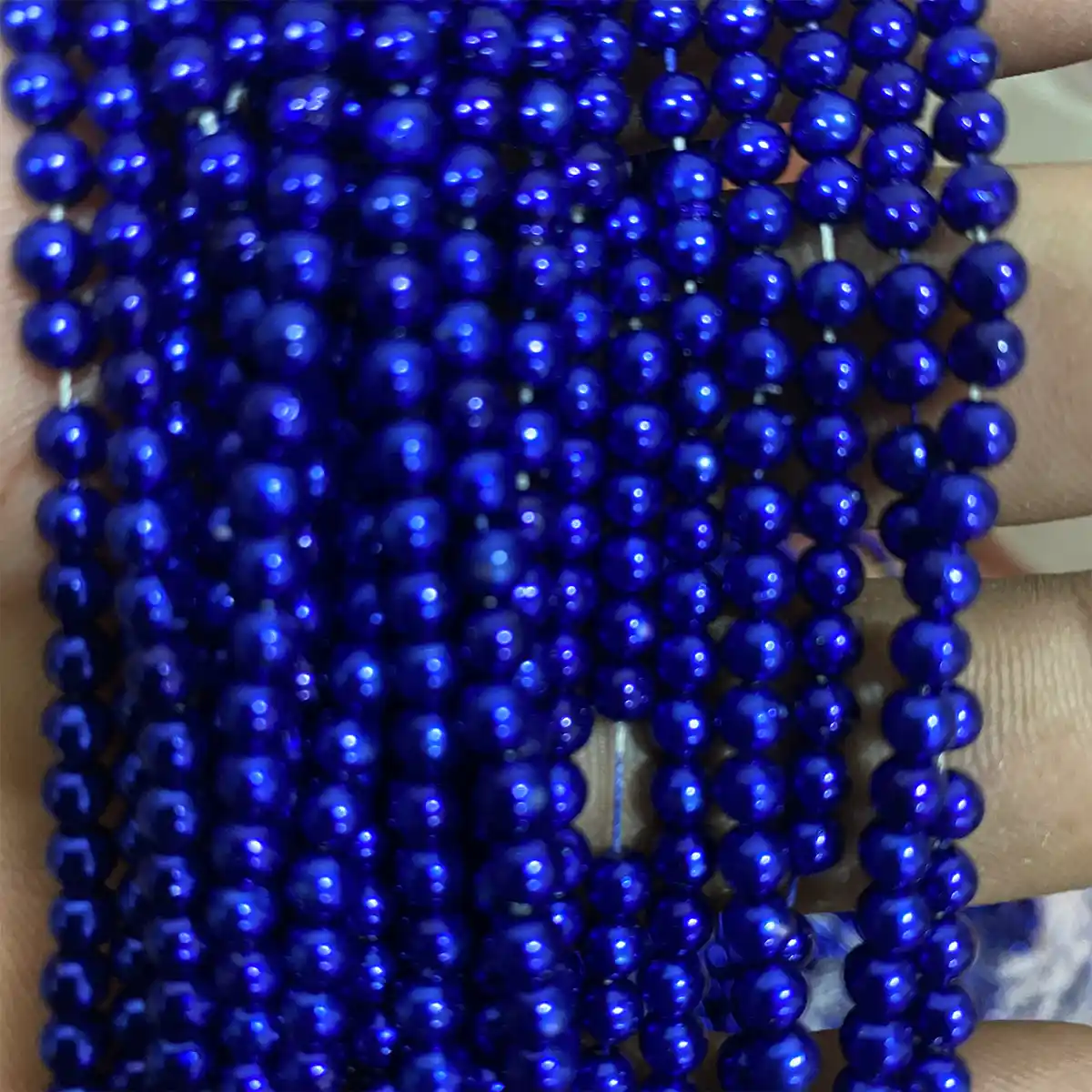 Blue Color 4MM Round Shape Beads – 1Bunch(12 line)