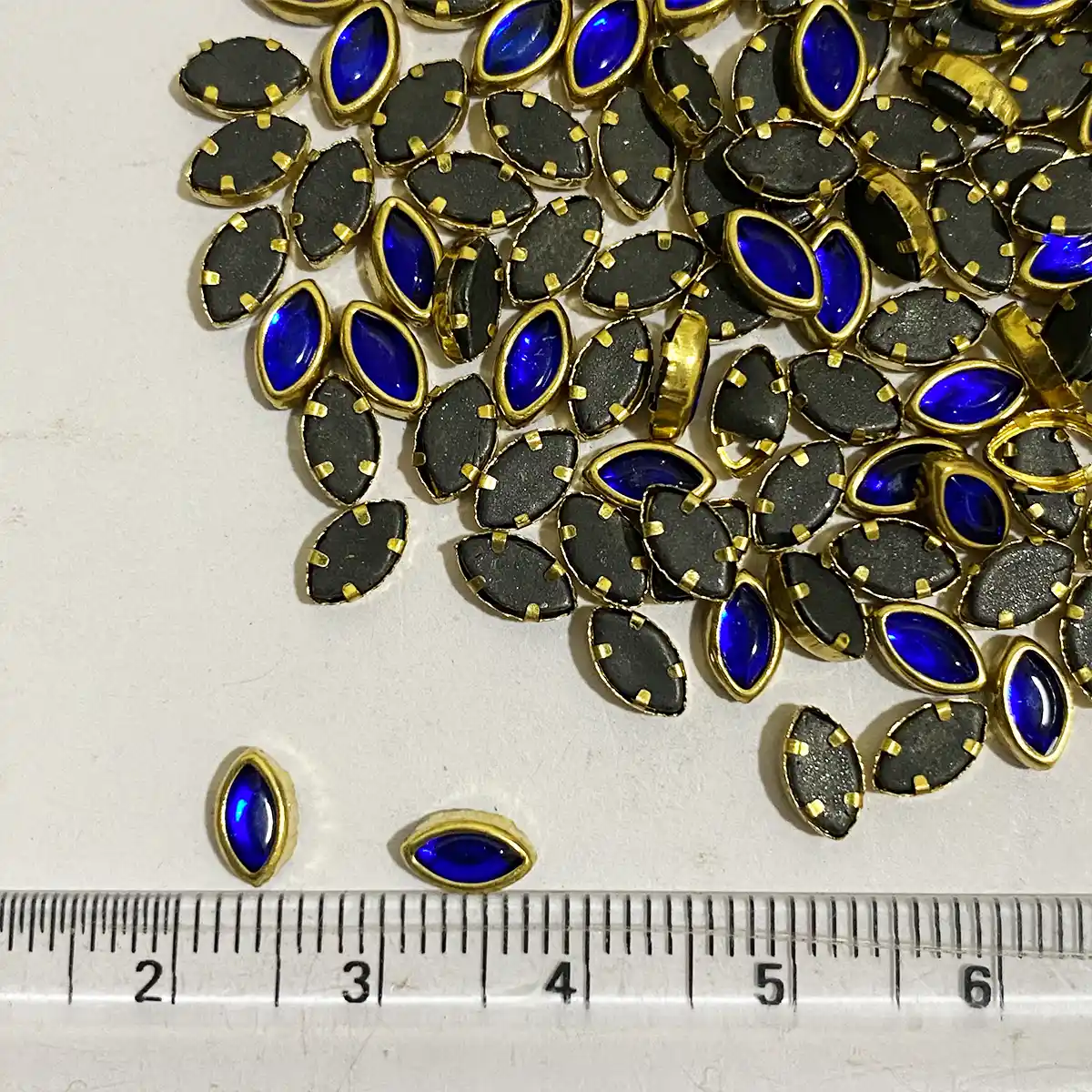Glass Kundan Stones in Flat Back Mounts Eye Shape 6x4MM (Blue)15grams
