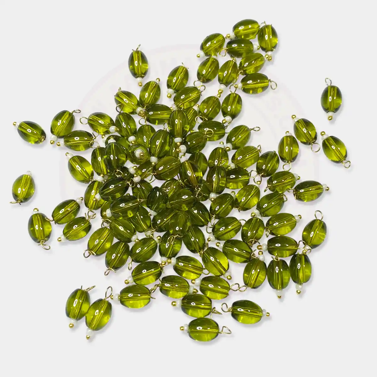 Hanging Beads Oval Shape Readymade Hook (8mmx6mm) Olive Green Color