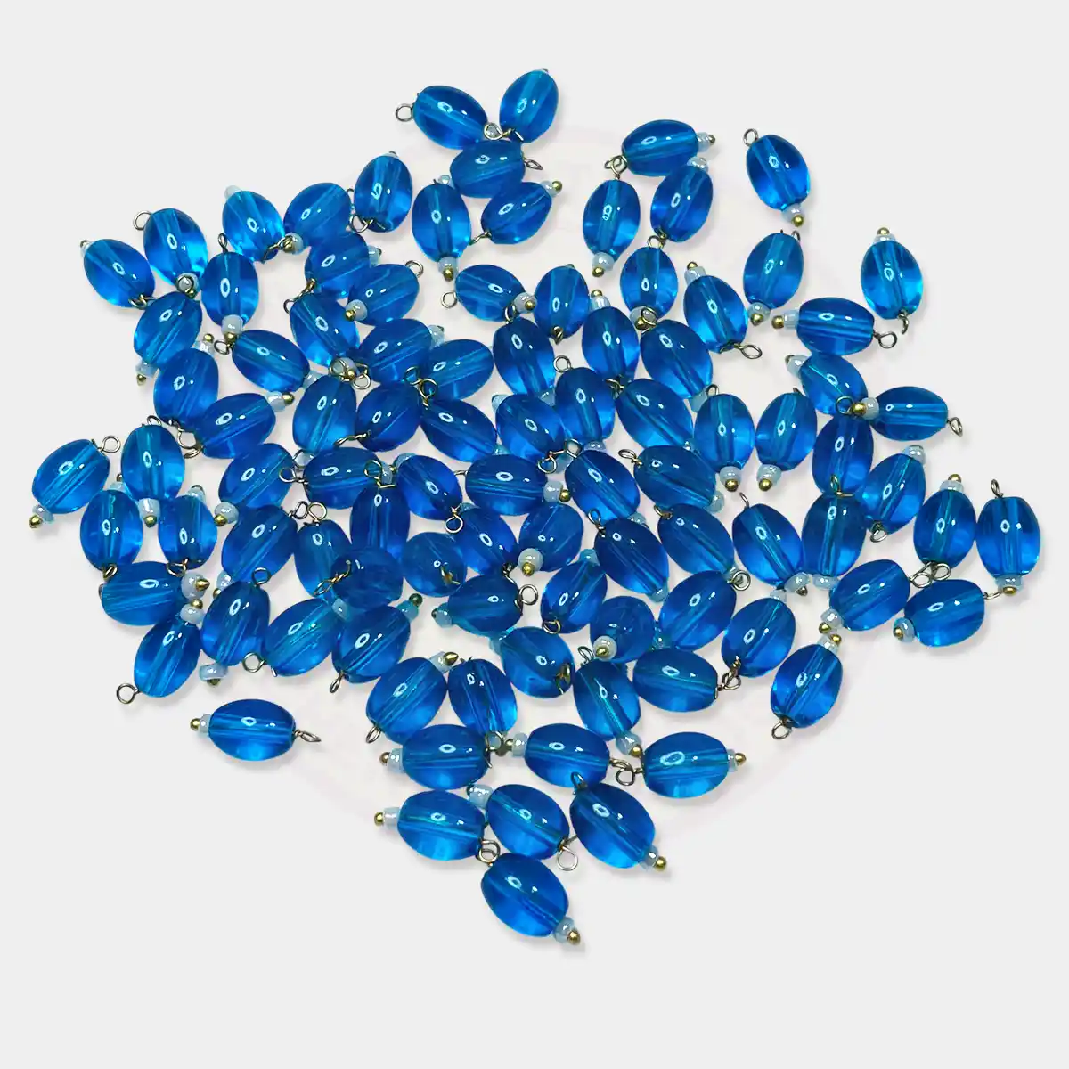 These “Blouse Hanging Beads” in an oval shape, measuring 8mmx6mm, are typically used in embroidery, aari work, or as decorative elements on traditional Indian garments like saree blouses.