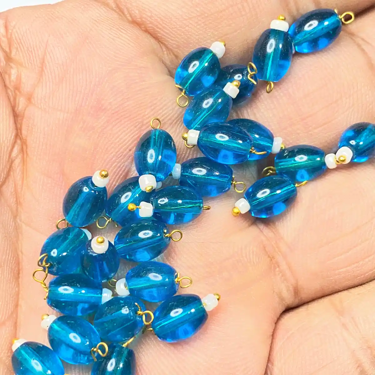 90 to 95 pieces of these oval-shaped blouse hanging beads (8mmx6mm) would likely be suitable for small to medium-sized projects. This quantity could be sufficient for embellishing several blouses, depending on the design and placement of the beads.