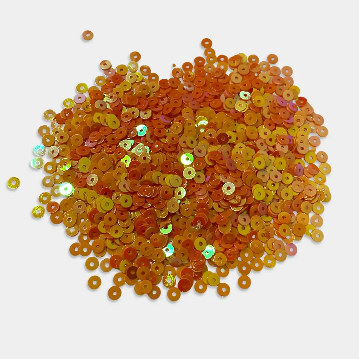Round Shape Sewing Shiny or Rainbow Sequins Orange Iridescent Color 4MM (10grams)