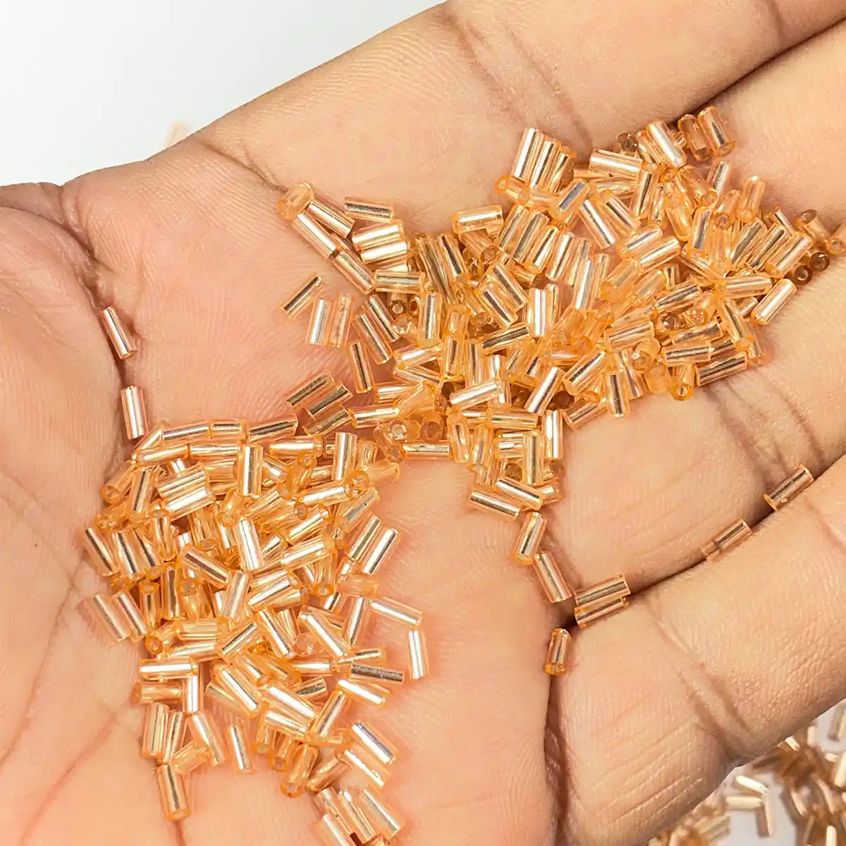 Tube Beads or Salli Buggle Beads 4mm Light Orange Color – Pack of 25 Grams