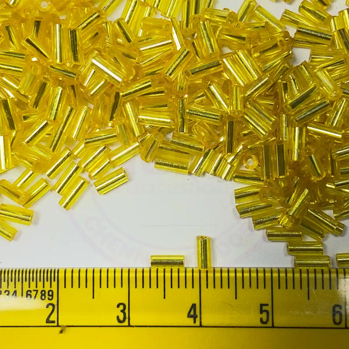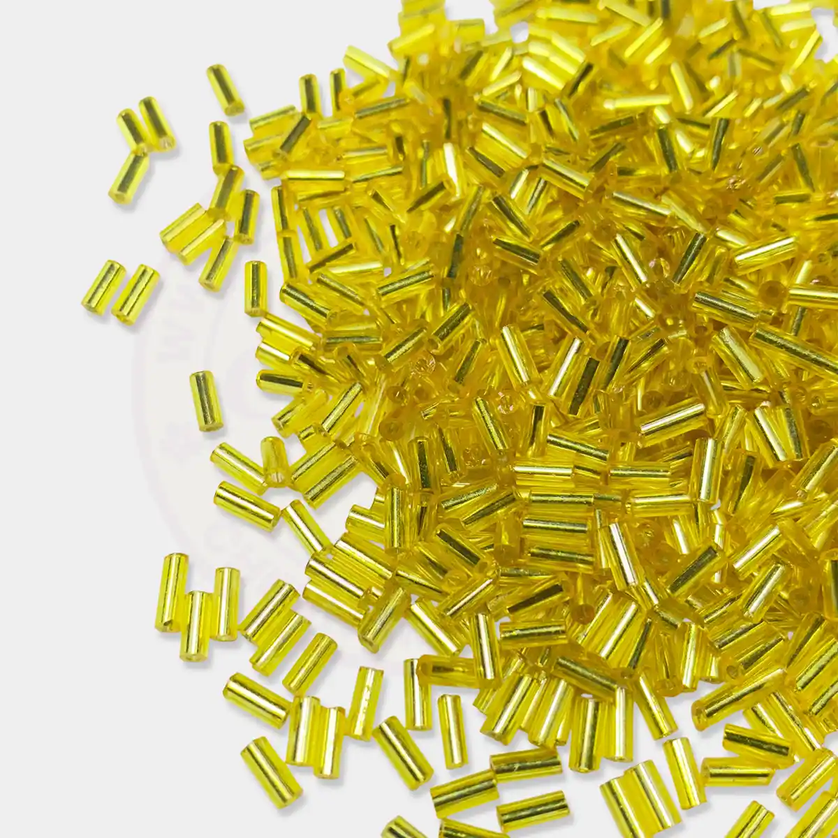 Tube Beads or Salli Buggle Beads 4mm Yellow Color – Pack of 25 Grams