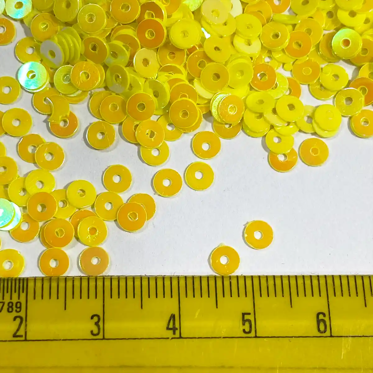 Round Shape Sewing Shiny or Rainbow Sequins Yellow Iridescent Color 4MM (10grams)